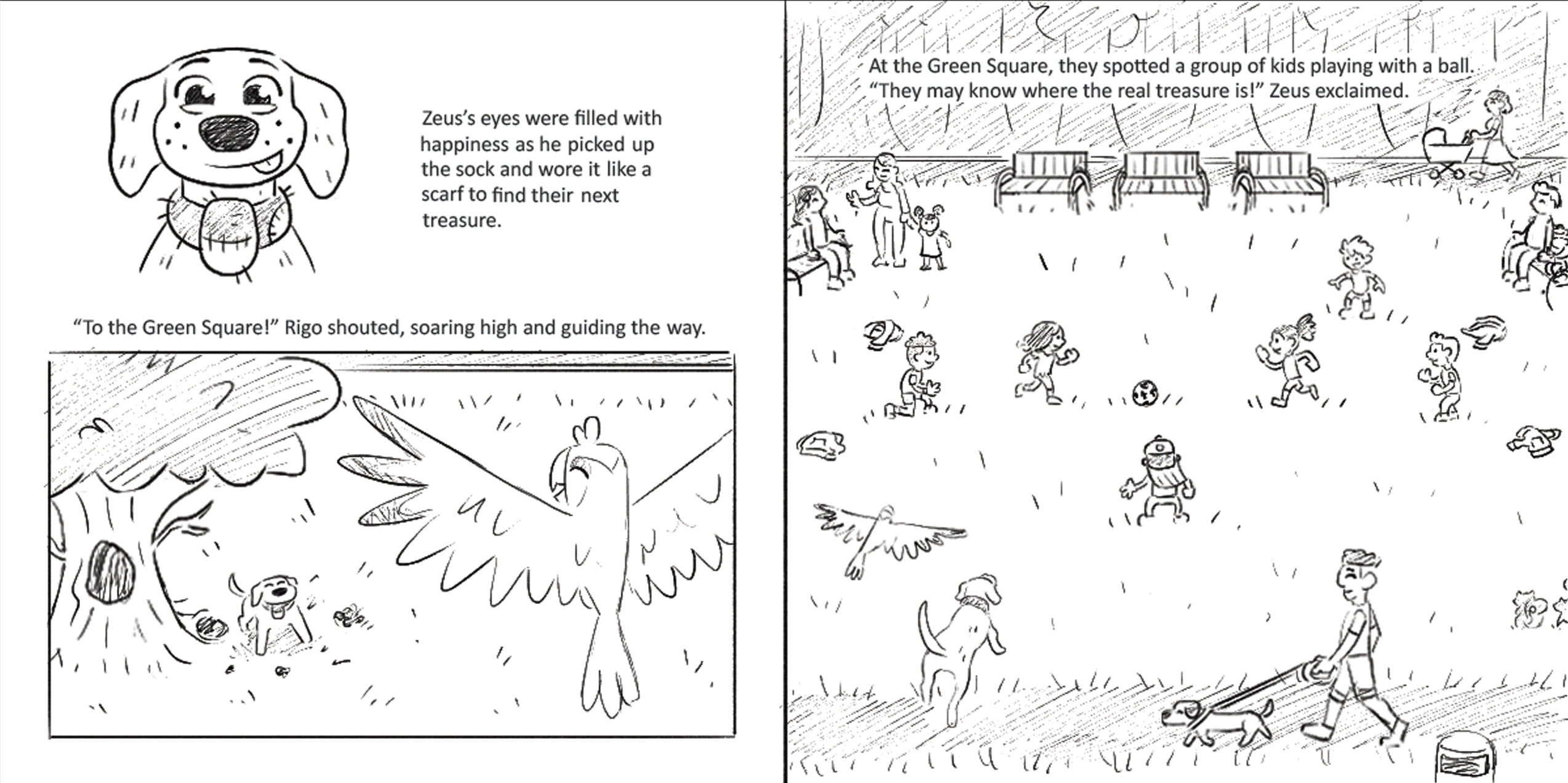 Project Details: Collaborating on this book was an incredibly rewarding experience. My role encompassed developing original character concept designs and layouts, formatting text from the script provided, illustrating approved sketches, designing both the art and text for the front and back covers, creating interior elements such as the title page, and delivering all final assets formatted for print.